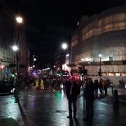 Na nabrežju - ničesar. Na drugem bregu je rdeče ožarjen miroval London Eye, napoved protestne, svečne procesije, ki bi se pod njim ustavila okrog pol dvanajste, ni dala vsaj na srednjo razdaljo vidnih rezultatov. Diskutiranju teh in onih mimoidočih, ki se z izjemo (zares) redkih opitih ni dvigalo nad jakost popoldanskega sprehoda po Russell Squareu, je tempo koraka proti podzemni in ostalim oblikam javnega prevoza dajal zvok helikopterja, enega samega na svobodnem londonskem nebu. Ura: 23.31.